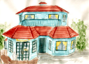 で、この八角形の家をイメージして、ショップ兼自宅の絵を描いてみました。
