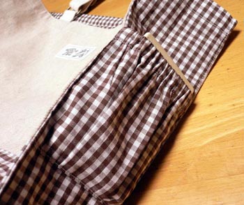 綿麻中厚手生成り生地に茶x白のギンガムチェックを合わせた