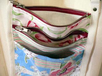 | フィードサック生地使用のぺたんこ斜め掛けショルダーバッグ ピンク系とブルー系のフィードサック 上部はファスナー開き。 中間にファスナー付きポケット1つ 下段にオープンポケット1つ 厚みはなくぺたんこです。 |