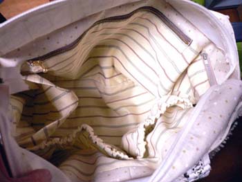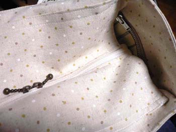 バッグの口は両開きのファスナーを付けました。